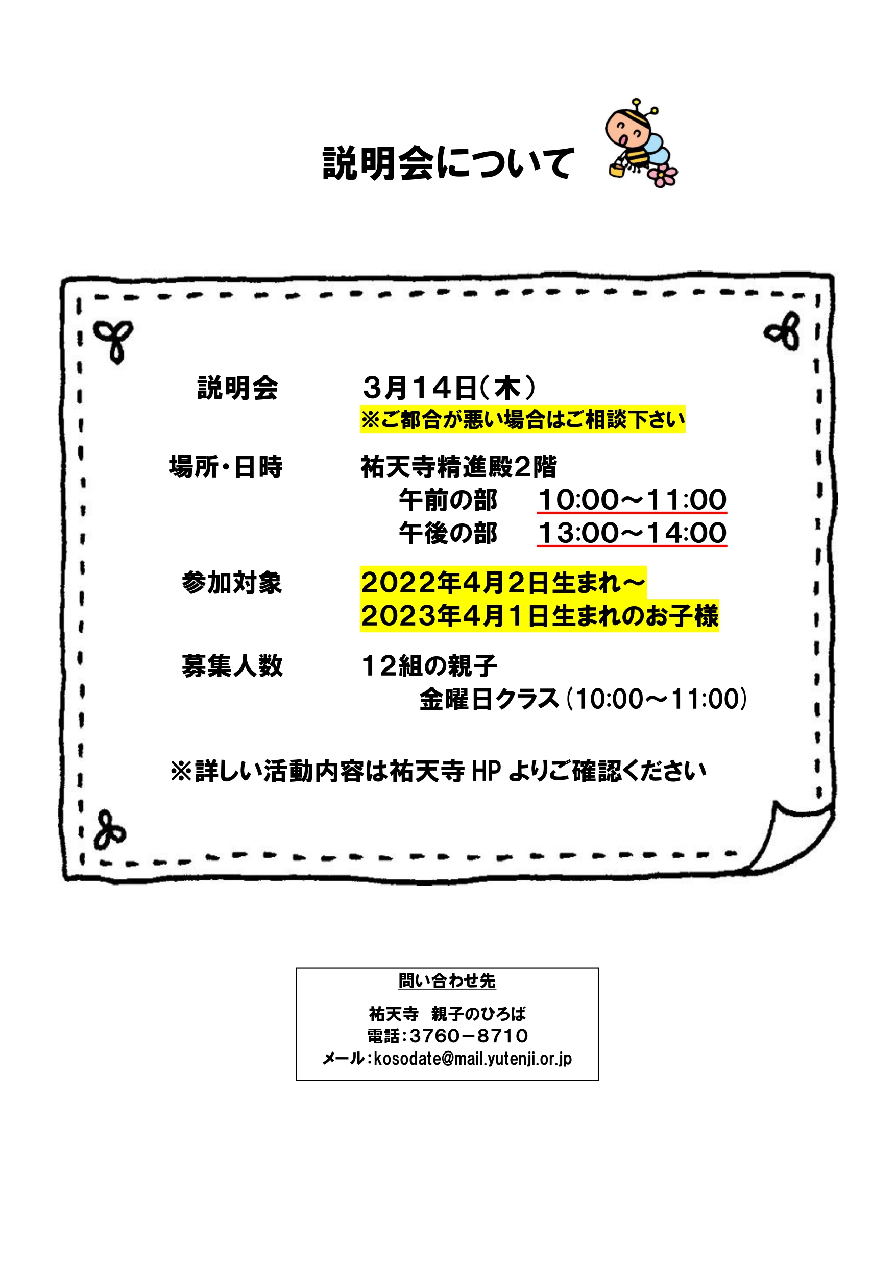 » 令和6年度親子のひろば1歳児クラス募集のお知らせ