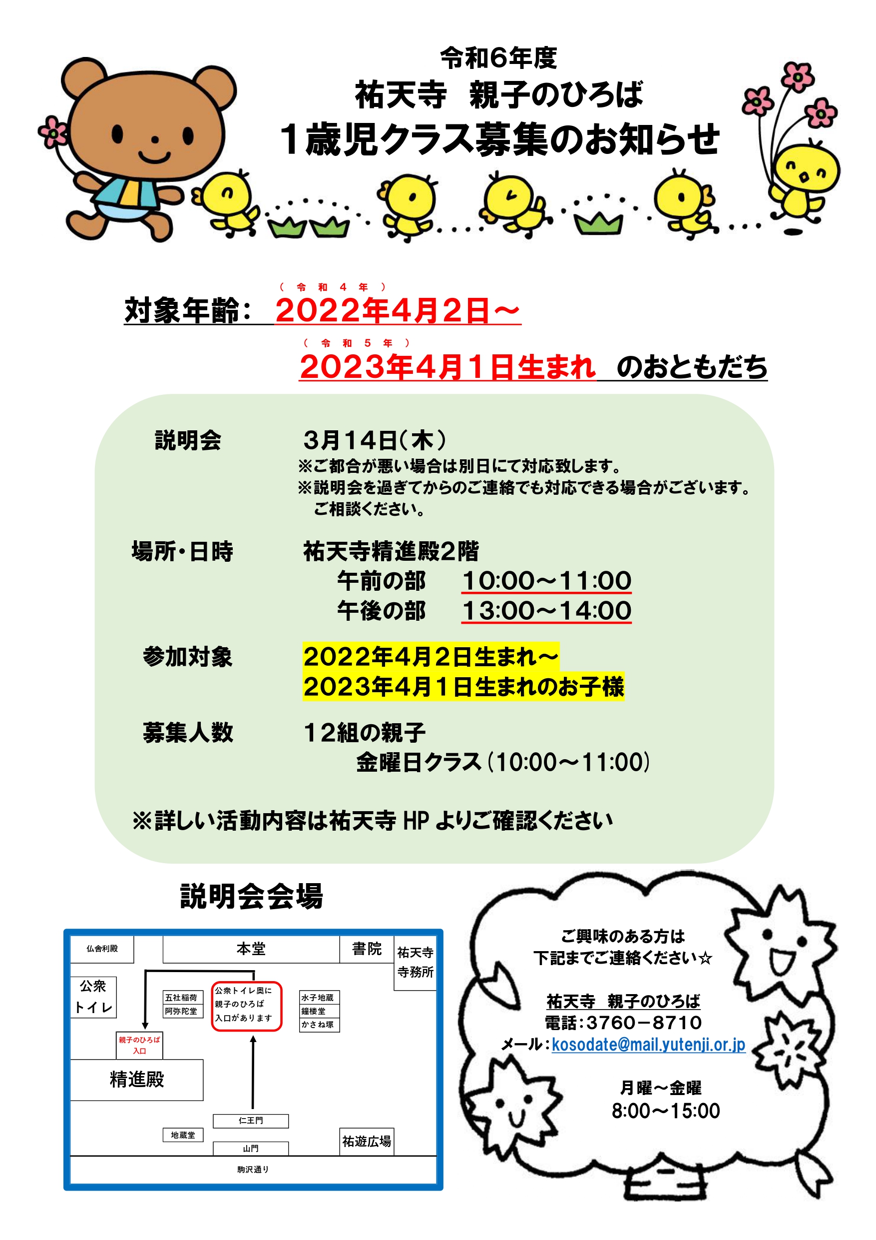 令和6年度親子のひろば1歳児クラス募集のお知らせ